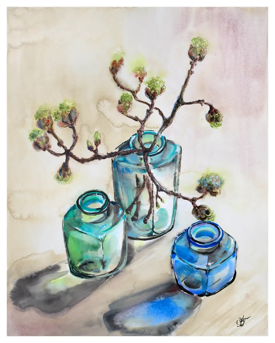 Still life. Impression. Inspired by Blackthorn flowering. Watercolor on cellulose paper, satine,300g. The original artwork is available for sale. Please contact me via email ovg.sen.art@gmail.com or via "enquire"