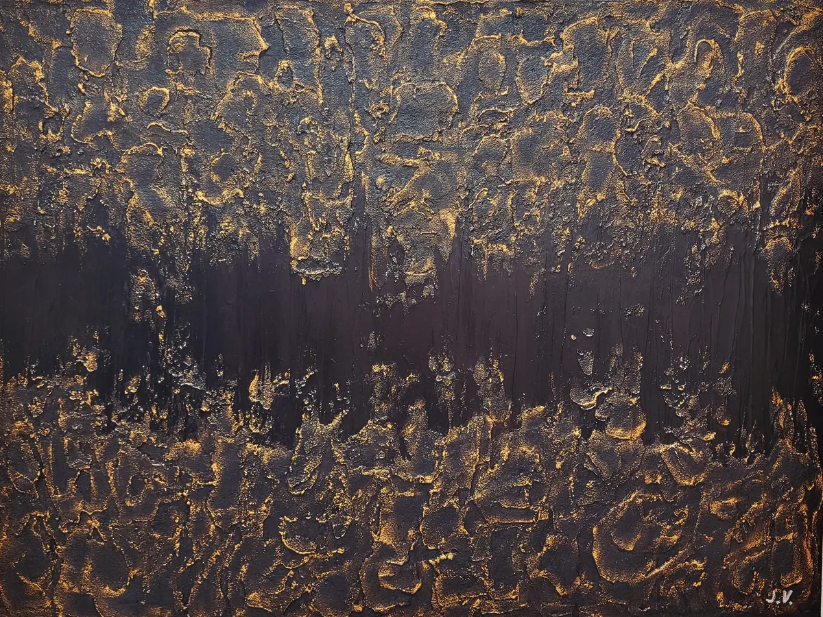 Šis kūrinys kalba apie tai, kas lieka paslėpta net tada, kai žiūrime atidžiai. Sluoksniuo- tas paviršius, tamsūs tonai ir auksiniai pėdsakai kuria įtampą tarp matomo ir nujaučia- mo. Linijos tarsi veda, bet niekada iki galo neatskleidžia krypties.„Neatskleista“ kviečia ne ieškoti atsakymo, o pasilikti nežinojime. Tai būsena, kurioje paslaptis nėra proble- ma – ji tampa vertybe.