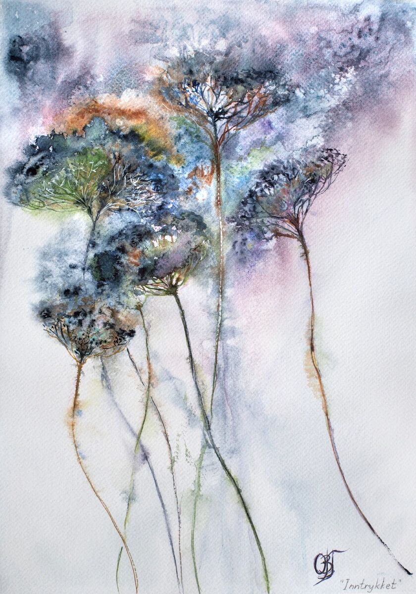 This artwork inspired by lovely Achillea millefolium plants I have collected in autumn 2021. Captured one of the impressions I got from natural composition growing beautifully along the coast line of the Oslo fjord, Norway. A semiabstract vision. Painted on Fabriano 25% cotton paper CP, GF. 300g.