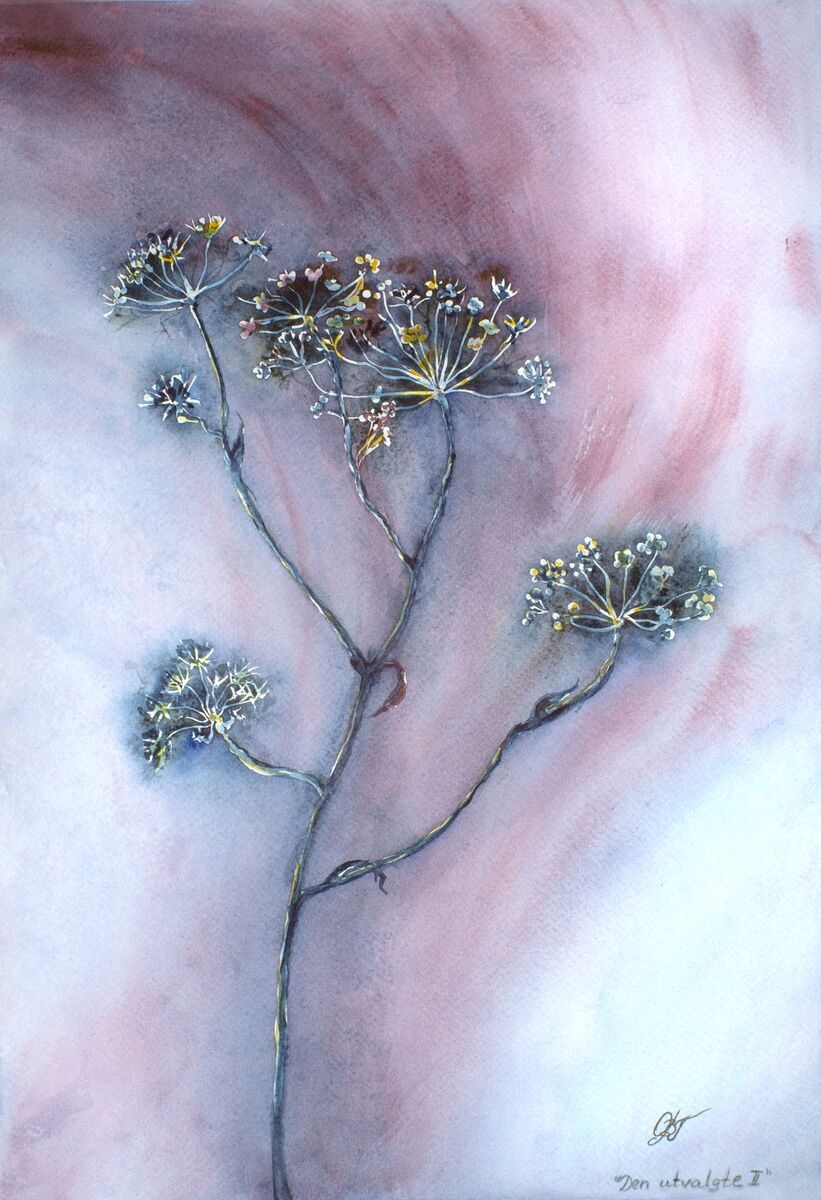 Inspired by the Aegopodium sp. winter flowers. The artwork is about a simple flower, captured a serenity moment of winter nature beauty. Painted on Arches CP 100% cotton, GR,300g.
