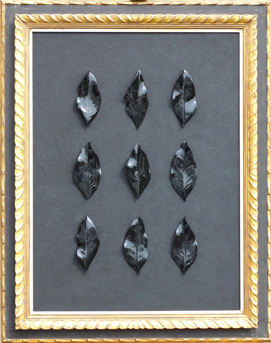 Spray paint using layered lace technique on acrylic pouring on canvas. 60 x 30 cm