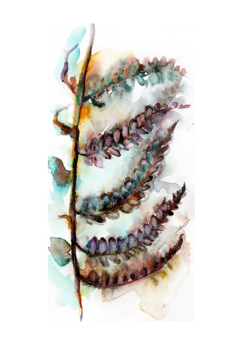 Watercolor dreamy etude. Semiabstract. Captured an autumn fern. Painted on watercolor paper 25%cotton, 300g.