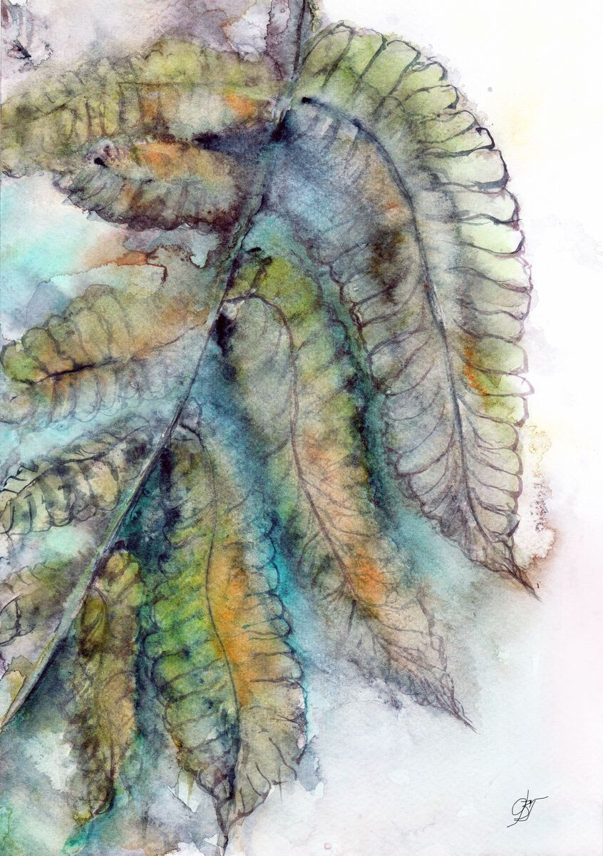 Semiabstract fern. Watercolor. Impression. Painted on Fabriano 25% cotton.