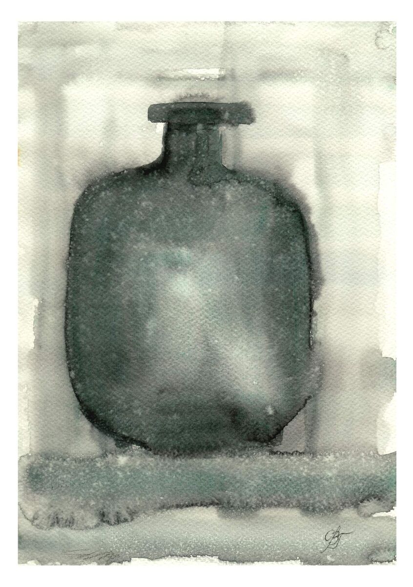 Watercolor abstract still life. A vase. Gray tones. Painted on Fabriano 25%cotton