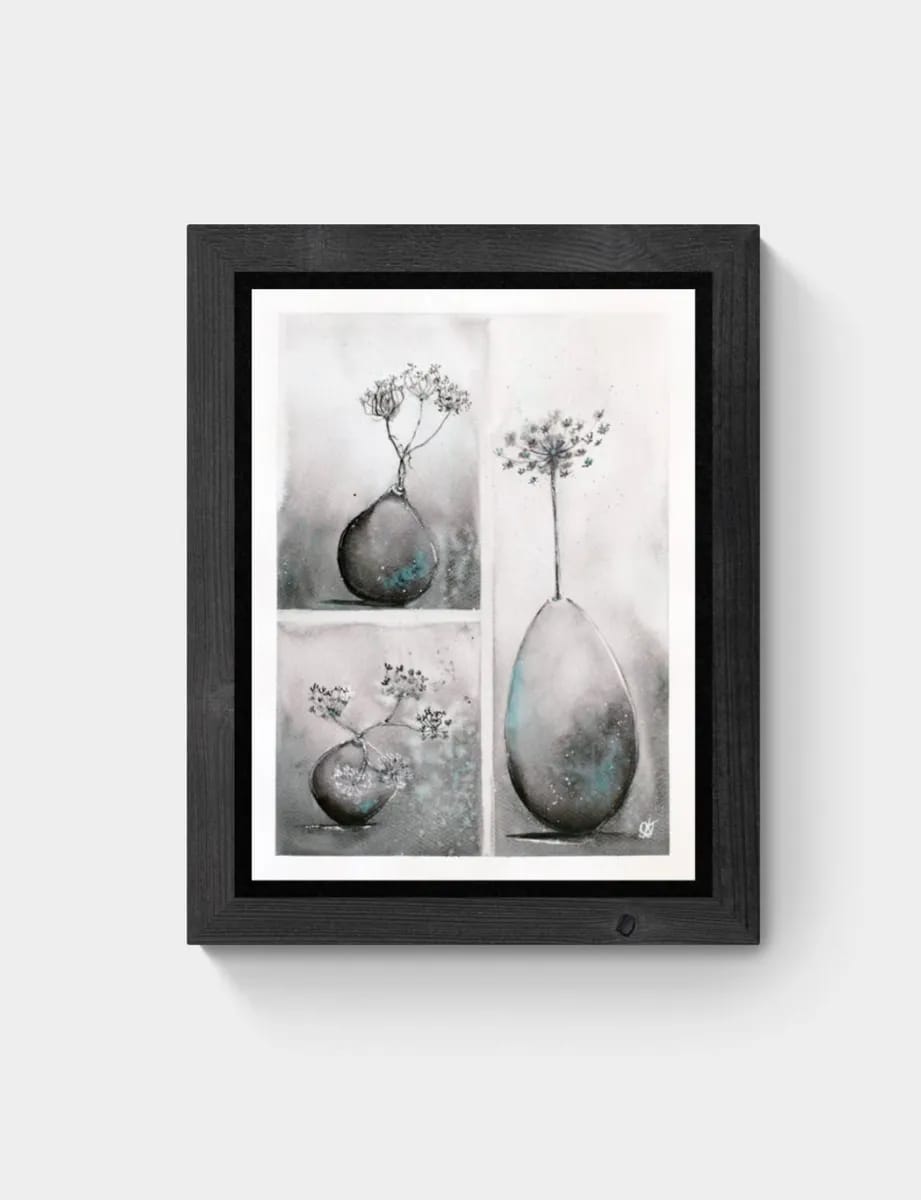 "Everywhere". Inspired by modern vases, Nordic aesthetic, wild growing herbs. Fabriano 25% cotton paper, CP, 300g