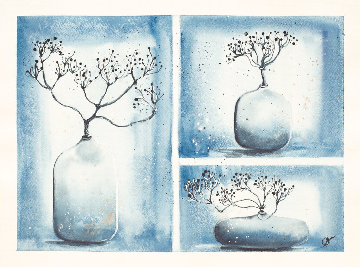 From the series "Everywhere". Inspired by modern vases, Nordic aesthetic, wild growing herbs. Fabriano 25% cotton paper, CP, 300g