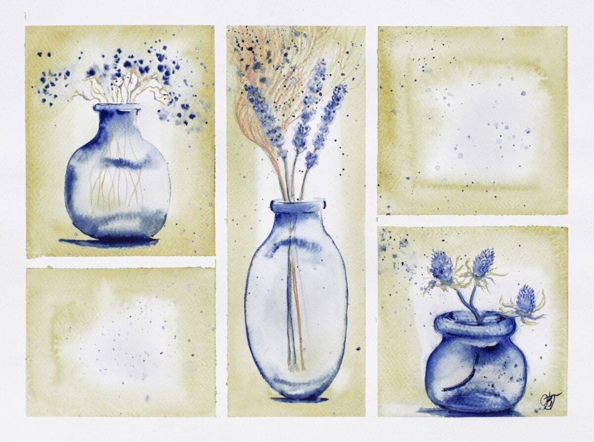 "Everywhere". Inspired by modern vases, Nordic aesthetic, wild growing herbs. Fabriano 25% cotton paper, CP, 300g